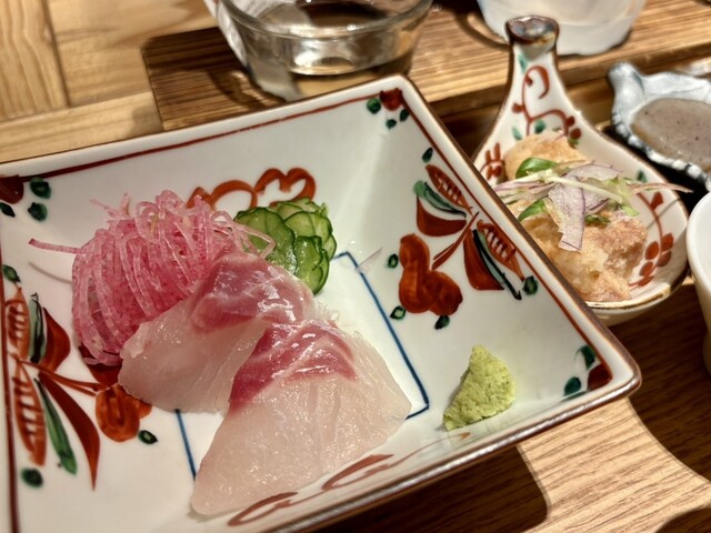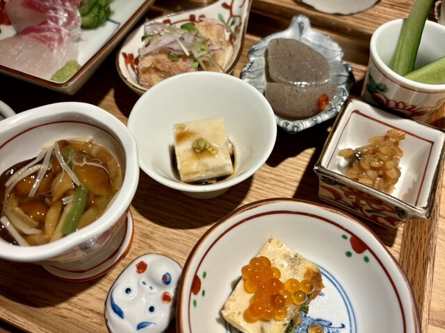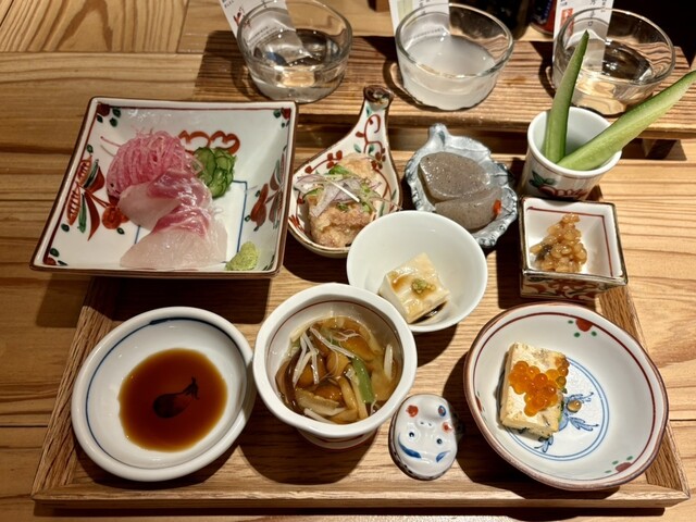 日替わりのおまかせで刺身に小鉢が6種類と日本酒にぴったりのアテなので加茂錦いただきました