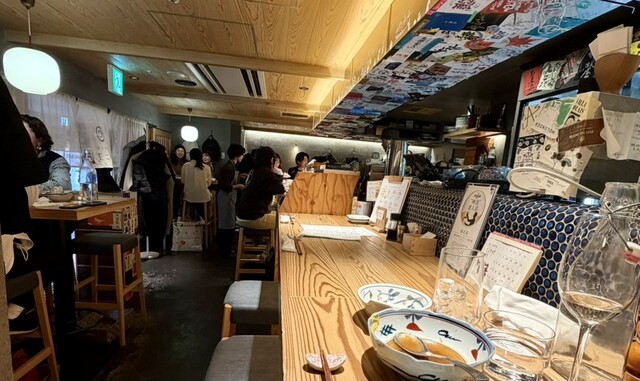 白木を基調とした清潔感のある落ち着いた雰囲気の中、美味しいお酒と旨いアテが楽しめます。