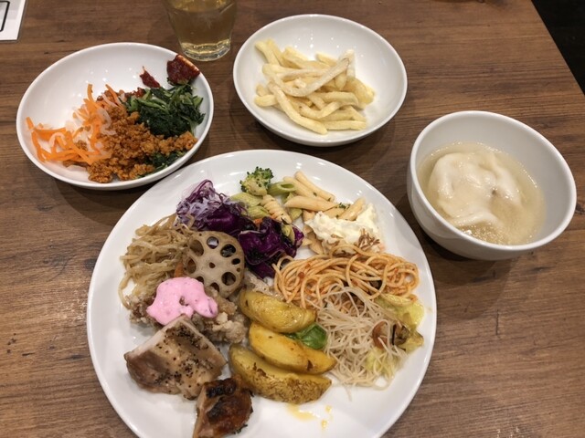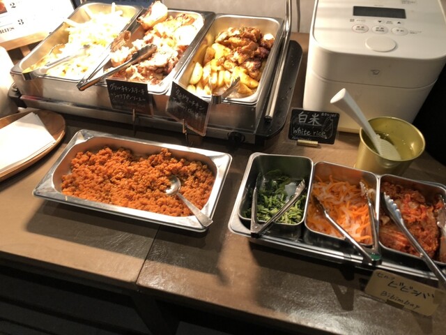 大手町にこんなに安いビュッフェがあったんですねー 肉っぽい料理は小さなハンバーグ風、チキングリル、鳥の唐揚げ、カレーくらいですが、サラダもそこそこ用意されていて味も満足 デザー... 詳細を見る