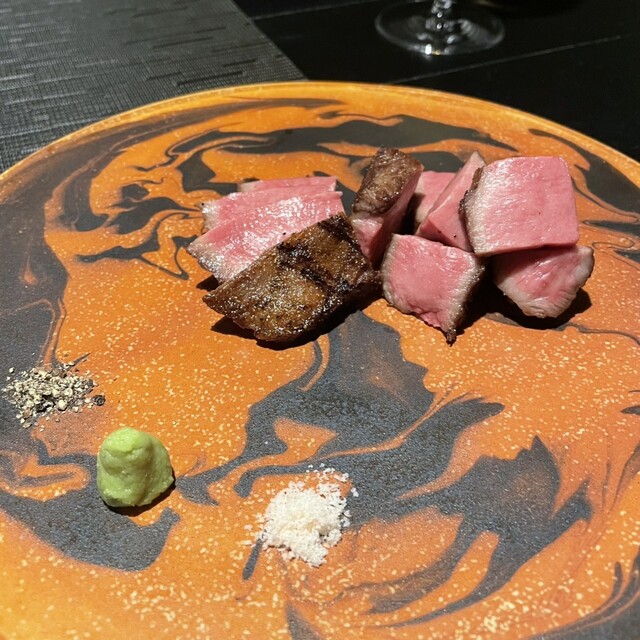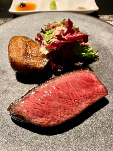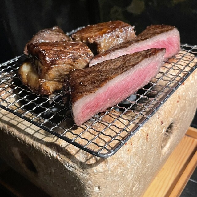 築65年の天井の低いレトロビルへ引越して、外観が昭和の街並みになった新しい忍者。 楽しさとおいしさは赤坂の頃と変わらず、素晴らしい。 分厚い澤井牛ステーキ150gはミディアムとウェルダンの中間の焼き方でも肉が固くならず、柔らかくてとてもおいしい。ステーキ専門店や鉄板焼きで食べるステーキと遜色ない... 詳細を見る