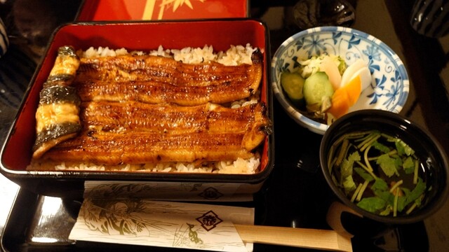 少し甘めでサラリとした仕上がりのタレで焼き蒸しあげた鰻は歴史を語る言わずもがなの名品です。 寛政12年(1800年)創業の老舗の鰻屋で、初代の草加屋吉兵衛の名前を漆塗りのお重... 詳細を見る
