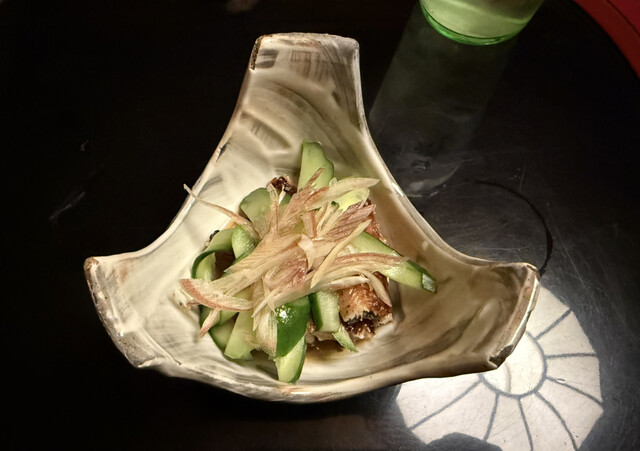 寛政12年(1800年)創業の老舗の鰻屋で、初代の草加屋吉兵衛の名前を漆塗りのお重にも書き染めていて、その歴史を物語ります。創業の地は蔵前で、その後この地、日本橋に移転しトータルで200年以上の歴史を持ち、その建物もなかなか味のある造です。