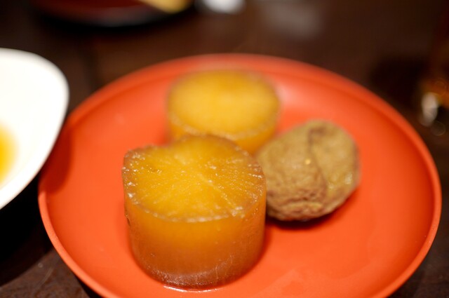 JR東京駅下車徒歩5分のところにある当店。駐車場なし。当店は、創業大正12年の歴史あるおでん屋さん。昔ながらの東京らしい味と雰囲気が味わえるお店。そして、至便な立地。2人では予約できないから、飛び込みでの訪問。何とか入店できた。お店は、1階にカウンター席とテーブル席。期待通りの雰囲気の良い居酒屋さんだ。接客も丁寧。カウンター越しにおでんが煮込まれているのが見える。カウンター席に案内してもらった。お...