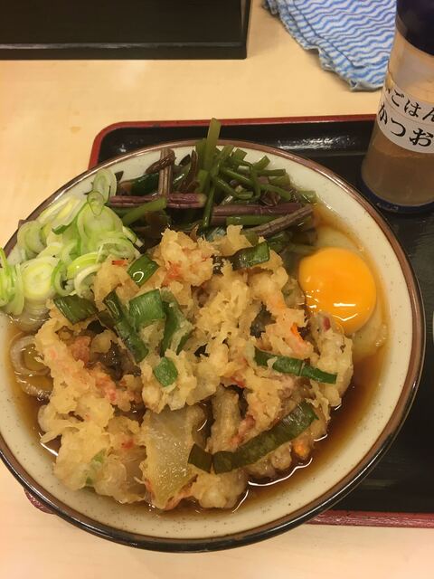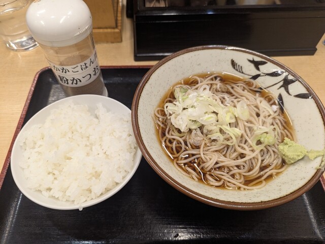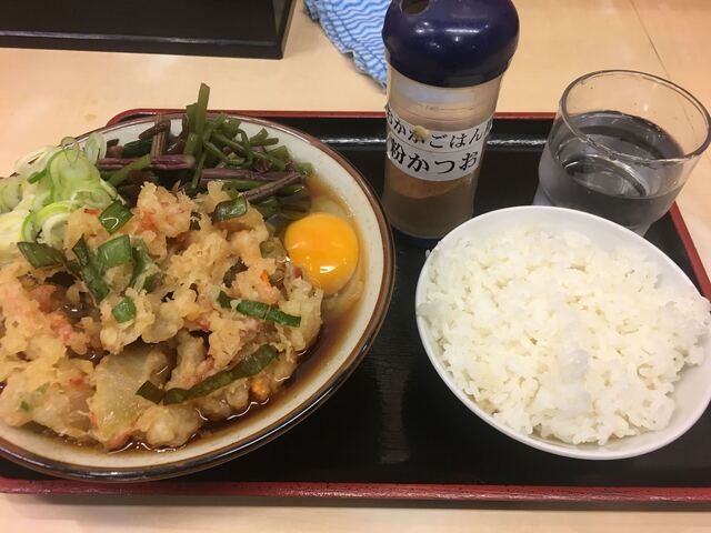 券売機にててんぷらそばとごはんを購入。あれ?ごはんの値段が上がったか。まあ昨今の米価格の値上がりを考えればやむなし。先に券を店員さんに渡し列に連結。しばし待つ。