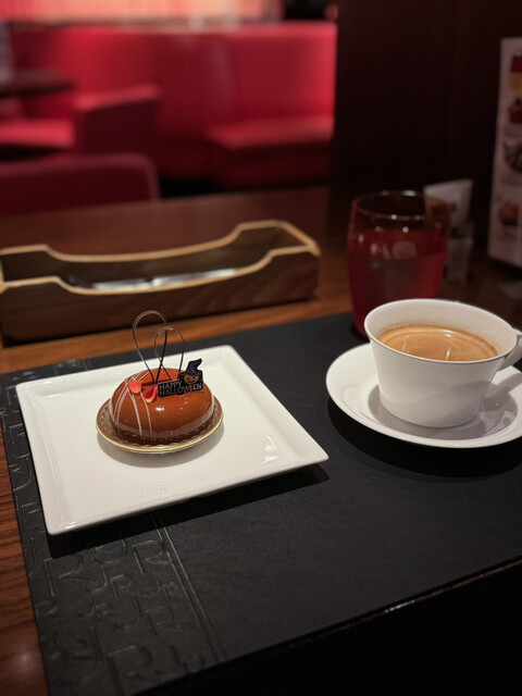 日本橋高島屋の中にあるジョエル・ロブションのカフェ。赤を基調とした華やかな店内ですが席は狭いように感じました。