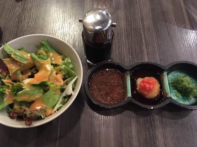3種のたれ、オニオン、ポン酢、エシャレット。