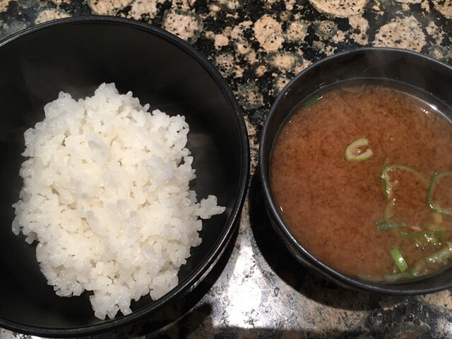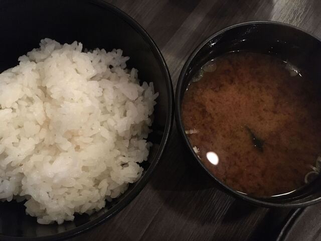 お味噌汁は普通。お行儀悪いけど、ご飯には残ったたれをちょいちょい乗せて。でも半分も食べられなかった。次回はご飯とお味噌汁はなしでいいかも。