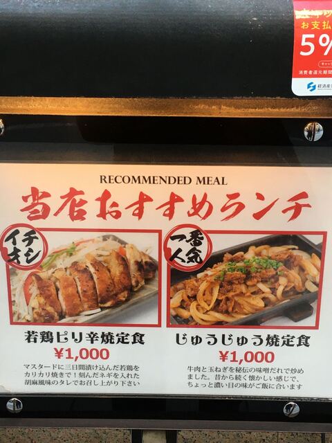 一番人気らしいリーズナブルなじゅうじゅう焼き定食にしました。ご飯は半分で。