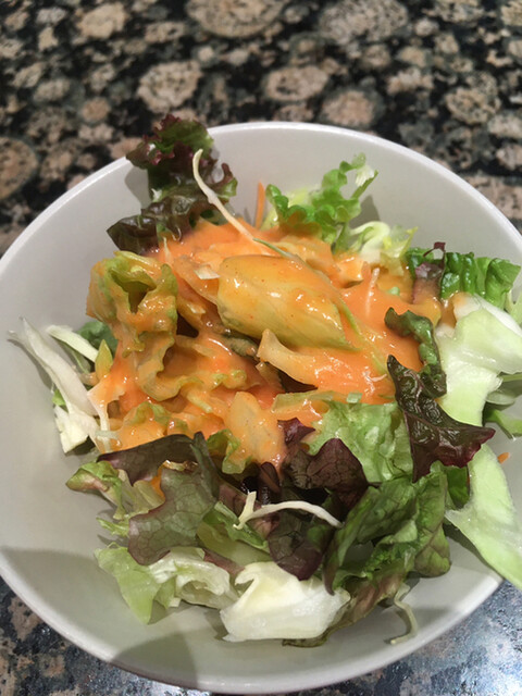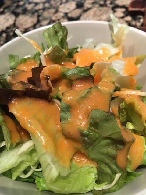 サラダは良く冷えているし、ドレッシングが美味しい。自家製かなあ。