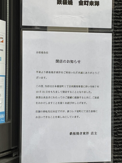 外の張り紙には新コレド室町でお会いするのを楽しみにしていますと書かれていたので、もしかしたら出店するのかな。是非お願いします。