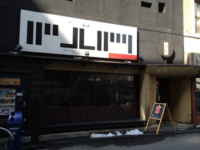 看板のある位置より柱一つ隔てた交差点寄りのドアが入口。 |