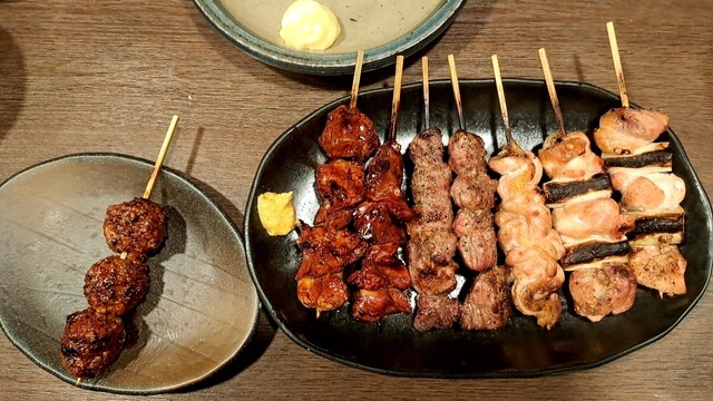 大人の街日本橋の老舗焼き鳥店で、こだわりの串焼きを片手に美味しいお酒をお楽しみください。 自慢の串焼きをはじめ、お刺身盛り合わせ、合鴨ロースと豚カルビの陶板焼き、名物大判唐揚げなどオードブルの盛り合わせ、〆の稲庭うどんまで、まんべんなくご堪能いただけるお料理全6品のコースを、種類豊富な飲み放題でお楽しみください。 2時間飲放付)