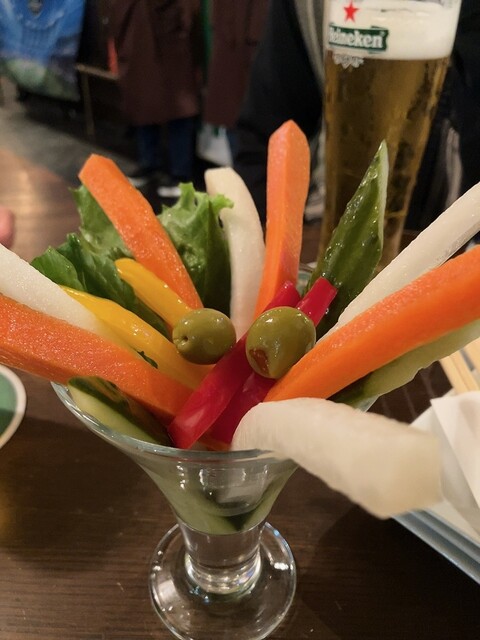座席もゆっくりめなので、落ち着いて飲めます。二次会利用のため、ピクルスとポテトくらいしか食べられませんでしたが、飲みメインにおすすめのお店です。