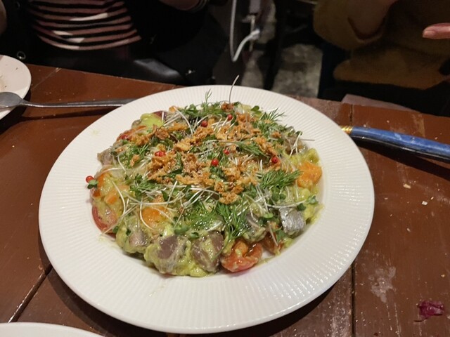 わさび風味のドレッシングが絶妙で、トマトの酸味、トッピングのプライドオニオンの香ばしさがアクセン...