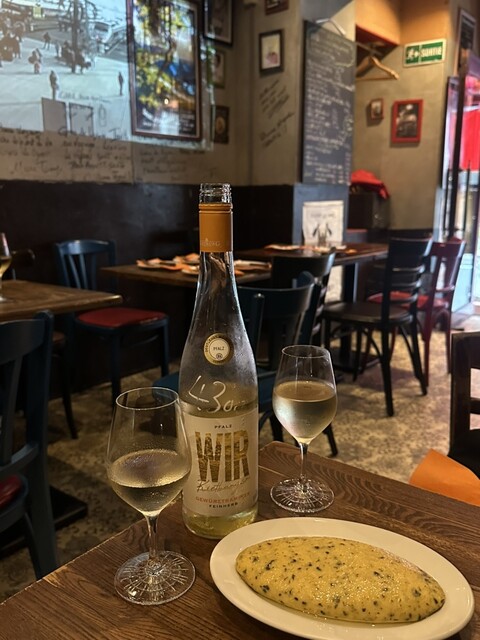 ワイン好きな友人に誘われて行きました。京橋駅から歩いて10分くらいのところにあります。トリュフオムレツ、リゾット、ソーセージ、変わり種カチョエペペ、だいたいハズレなしでした。ワインも選んでもらいました...
