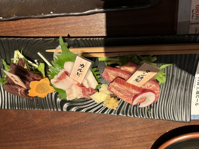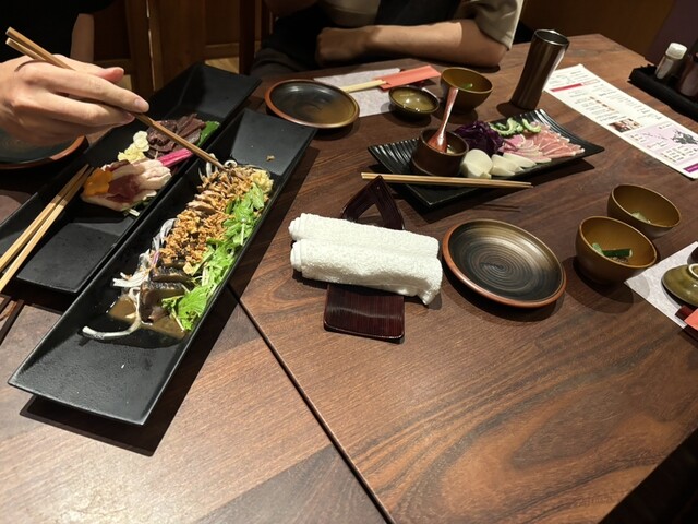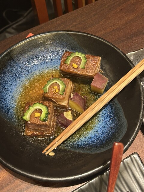 九州・沖縄料理ということで、ラフテー、馬刺しの3種盛り、きびなごの刺身と唐揚げ、さつま揚げ盛り合わせなどを注文。どれも美味しいのですが、個人的に嬉しかったのは...