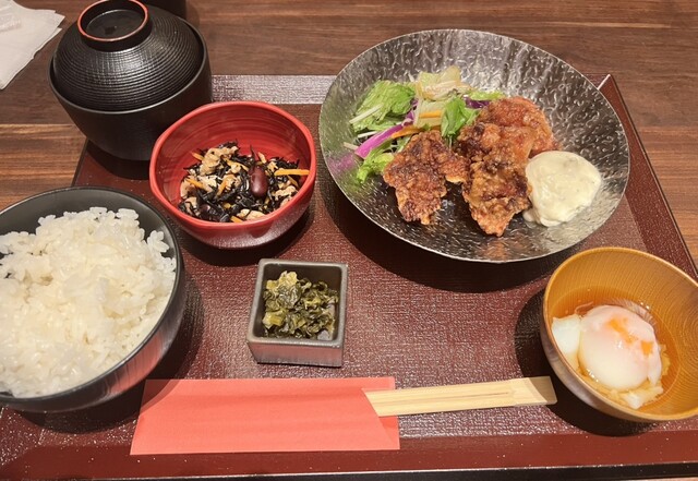 注文はチキン南蛮定食1,000,円、チキン南蛮は唐揚げに甘酢かけてタルタルソースのやつ(チキン南蛮風)他、ひじき煮...