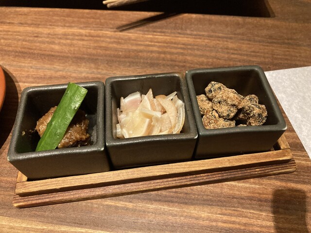 久し振りの利用。後輩と連れ立って行った。この後輩と2人で食事をすることは初めてかも知れぬ。このビルに入る何れかの店を目当てに訪れたところ、地下に続くエレベーターを降りた真正面に入口のあるこの店に、珍しく店の前に人が一人を除いて誰もいなかった。いつもは外で待機する客の為に置いてある椅子が常にいっぱいになぅているのだが・・・
