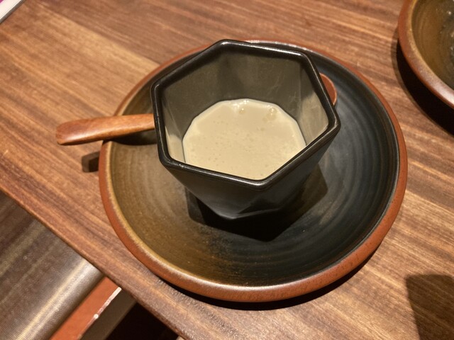 この店は今迄に2度程夜に利用したことがあるが、昼間の利用は無かった。通常はこの逆となるのだが、12時前結構余裕を持って店に向かっても、既に店外の椅子に客が待っていることも多く、回転率の良さそうな感じでもないので利用せずで今になっていた。何かの折に、同僚二人で覗いてみるとこの日は運良く過ぐに店に通された。夜に利用したことがあるので店の構造は理解しているが奥に半個室となった様なコンパートメントが幾つか有り、此処は非常に落ち着いて食事が出来る。この際も4人掛けのテーブルを3人で利用。ゆったりと利用した。