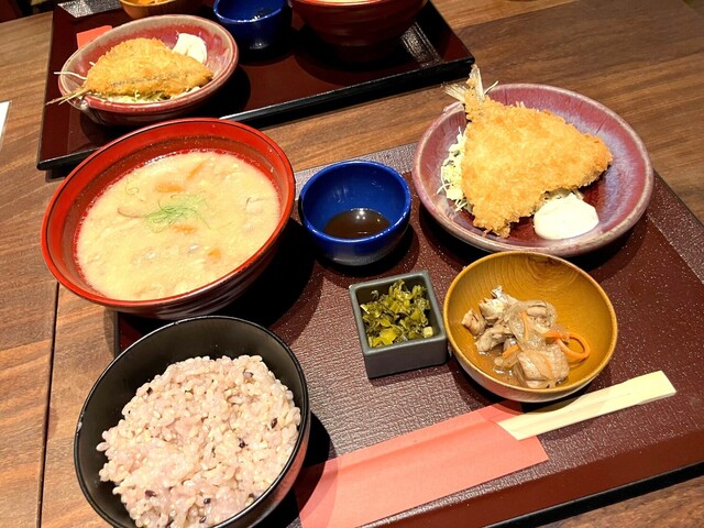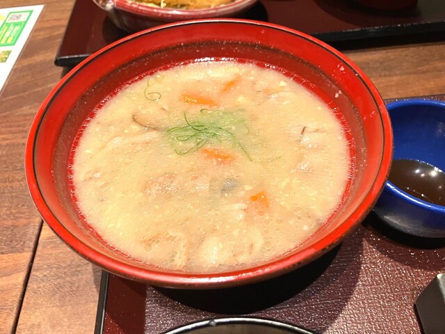 これ幸いにと、椅子に座り5分程で入店出来た。テーブル席に座りメニューを眺める。この日の日替わりは、豚汁にアジフライとのこと。前日まで帰省していたが、この際に、妻に食べたいものを幾つか挙げていたのだが、その中に豚汁が一つとして入っていたのだが、結局、他の希望のものを食べた。ラッキーである。迷うことなく、それを選択。
