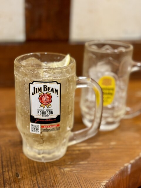 お客さんの間を縫って店の中央付近の丸テーブルに到着。あまり外国からのお客さんはいませんでした。店員さんが外国の方達でした。手を挙げて、なんとか気を引きます。飲み物は、レモンサワー組とハイボール組に分かれました。もちろん、みんなメガジョッキです。腹は満たされていましたが、折角...