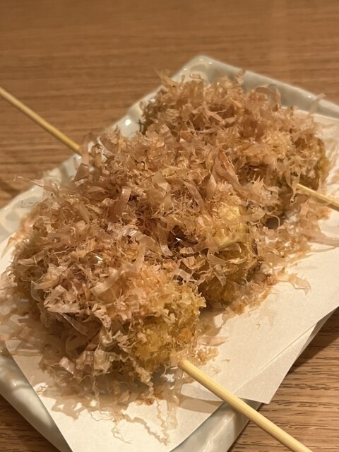 子持ち昆布の串揚げがおいしかったです!マグロの湯葉巻きも。