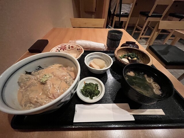 こちらのランチ(平日のみ)に行きたいな~と以前から思っておりました。 GWの間の会社休みにようやっと。 「鯛ゴマめし(1,300円)」 下にご飯があります。ゴマダレが・・・・とっても美味しい!!鯛にもご飯にもしっかり絡まるくらいですが、塩味の塩梅もいいし濃ゆさもありながらさらっといただける... 詳細を見る