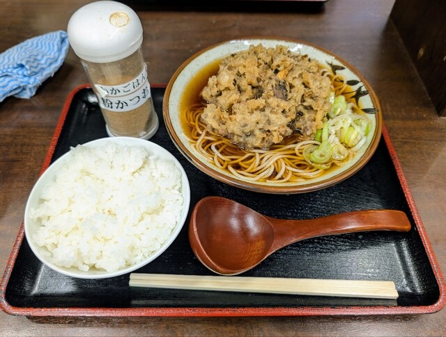 京橋にある鰹節を推しにしている蕎麦屋さん。場所柄サラリーマンが多く客足は絶えないものの、待ち時間なしで入店。 券売機で天玉そばとおかかご飯(小)を注文。出来上がりは早くあっという間に到着。付いてきたボトルからご飯に鰹節を振りかけて、醤油を何滴かたらしたら準備完了。 天玉そばは、ダシにエッジが... 詳細を見る