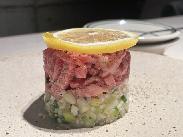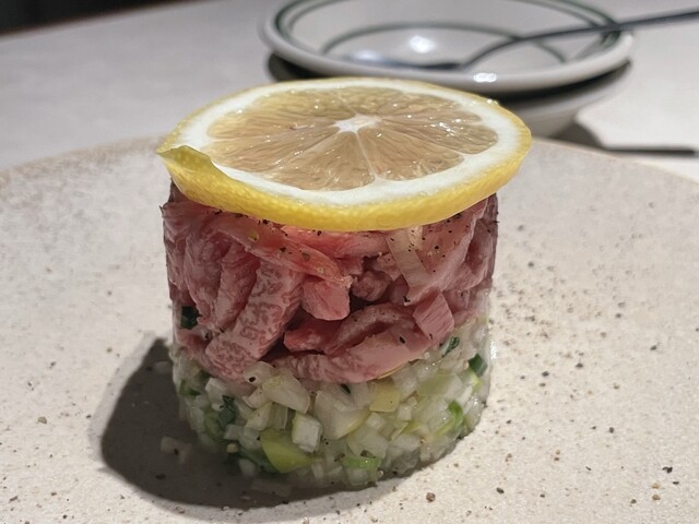 タレの味で誤魔化してない本気のユッケ。塩味だからこそ味わえる肉の美味しさガツンと感じる。口の中の温度で脂がとろけてしあわせが口の中いっぱいに広がります。