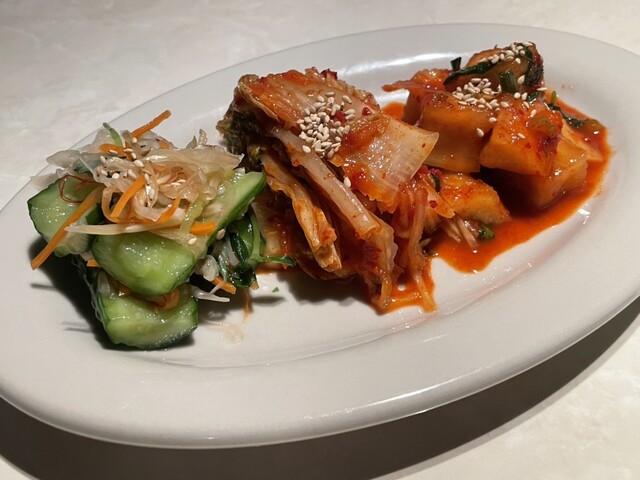 日本人好みの辛さも酸味も控えめのバランスの良いお味のキムチ3種盛り。