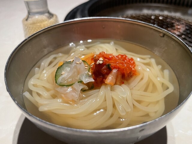 ガッツリお肉をいただいたあとの締めにピッタリ。ツルッとモチっとした麺が美味しかった。
