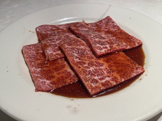 サシもしっかりあり旨みも堪能できる霜降り極上赤身。大きく程よい厚みにカットされており見た目も美しいお肉。焼きすぎない加減で火を通して口へ。とにかく柔らかくてびっくり。口の中でとろけていく感覚。飲み込むのが惜しいくらい。脂はサラッとしていて全く気にならずアラフィフの胃袋も最後まで美味しくペロリ。
