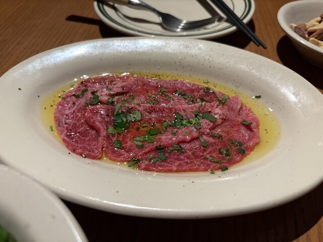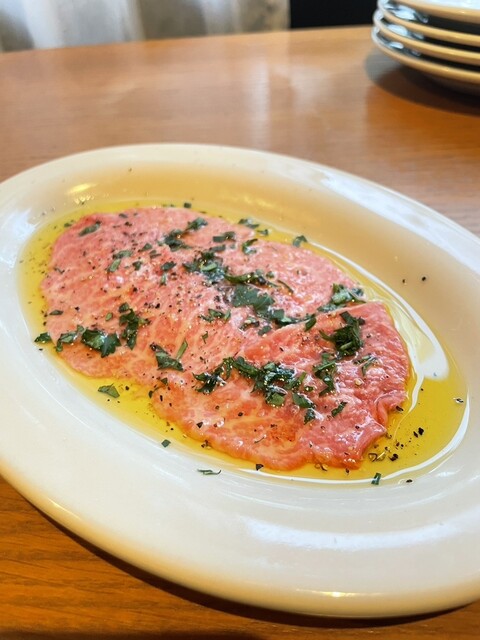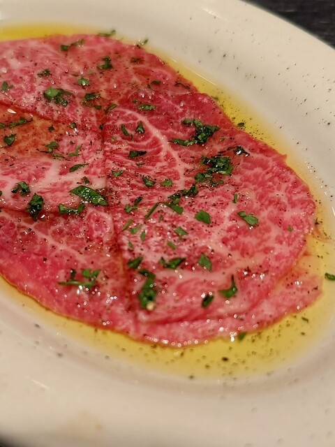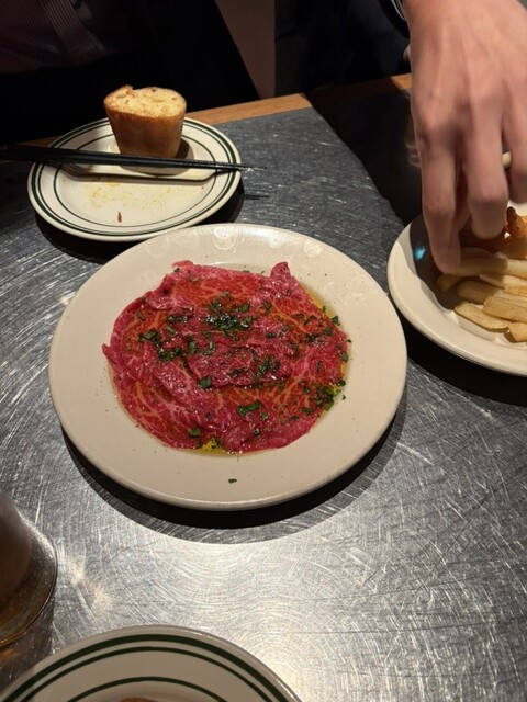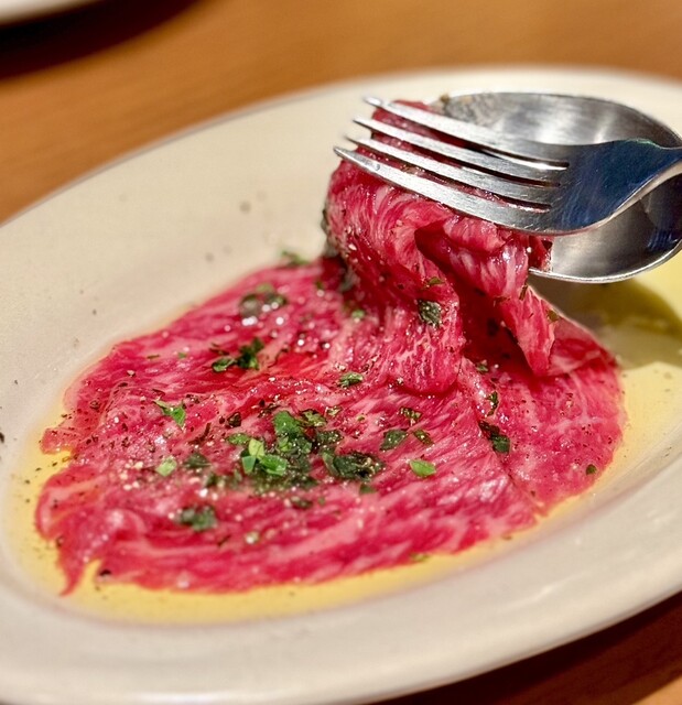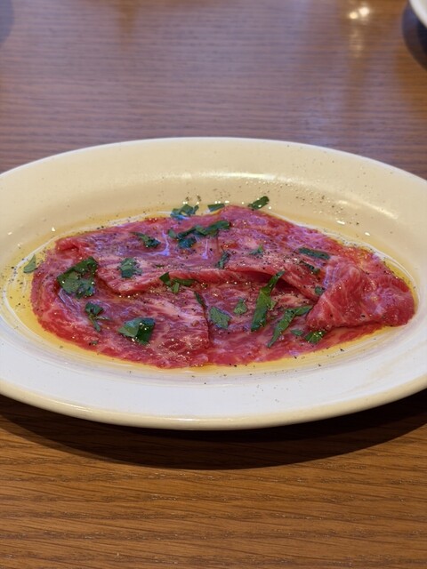 お店のイチオシは炭火グリルで焼き上げたステーキやタルタルステーキにカルパッチョだそうでそちらをオーダーしました。︎認定生食用食肉取扱認定店許可を取得...