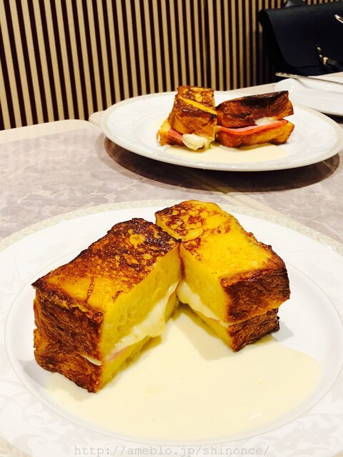 フレンチトーストにモッツアレラチーズとハムを挟んでチーズフ...
