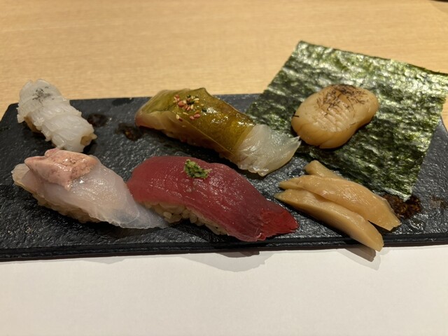 いろいろなタイミングが良く、大将との食の会話も楽しく、素晴らしい食事体験でした。仕事も丁寧でした。産地について少し気になる点もありましたが、漬け本マグロの粒マスタード乗せや、ウニのキャビア乗せ、本鮪の...