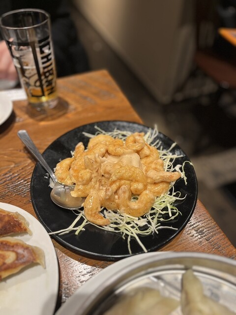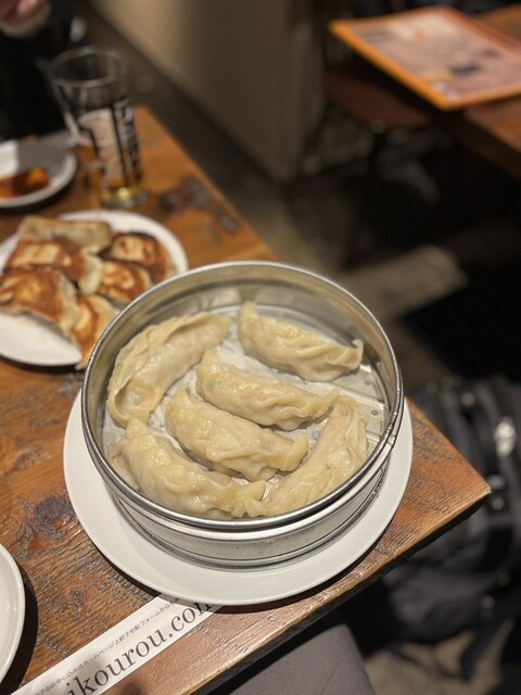 東京駅八重洲口から徒歩5分。ジャンボ餃子の老舗名店がある。夜17:30開店直後に入店し、ギリギリ2階の円卓に他のお客さんと相席で着席。 ・焼餃子 ・春巻 ・焼ビーフン ・春餅 ・瓶ビール アサヒスーパードライ ・ジュスミンハイ 2人だとちょっと多め。焼ビーフンと春餅はどちらもビーフ... 詳細を見る