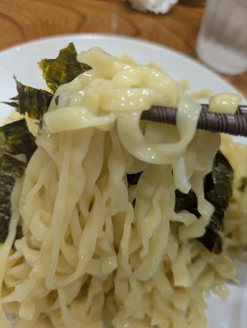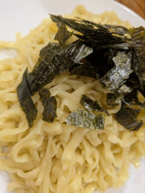 納豆混ぜそばを食べる。平打ち麺をチョイス