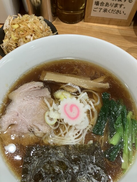 ラーメンにネギトッピングしていただきました。ネギは別皿で出てきました。細麺でいただきました。スープや麺はこれといった特徴はないですが丁寧に作られた美味しい醤油ラーメンです。今度は平打ち麺にしてみよう。...