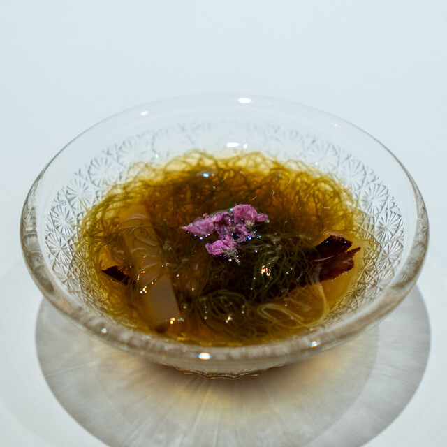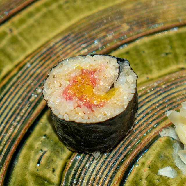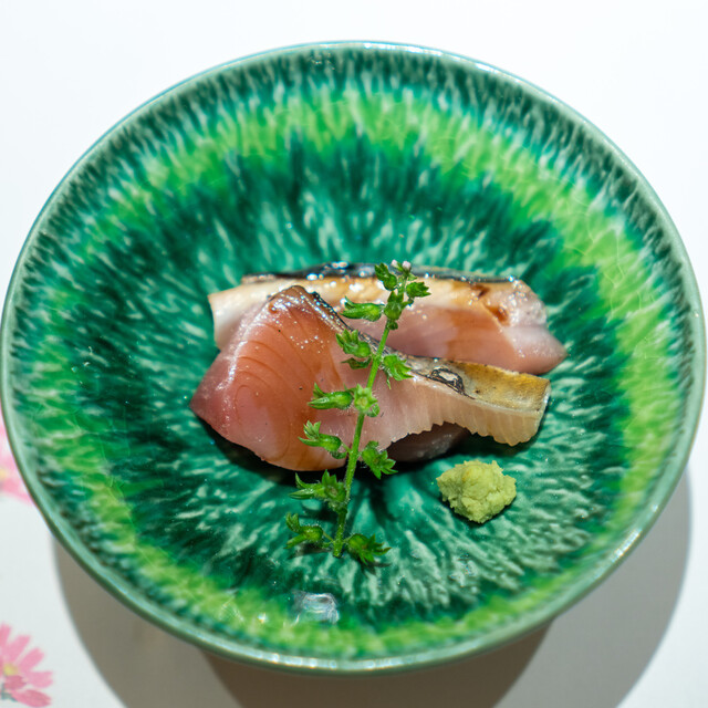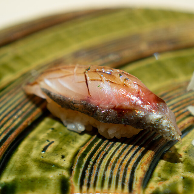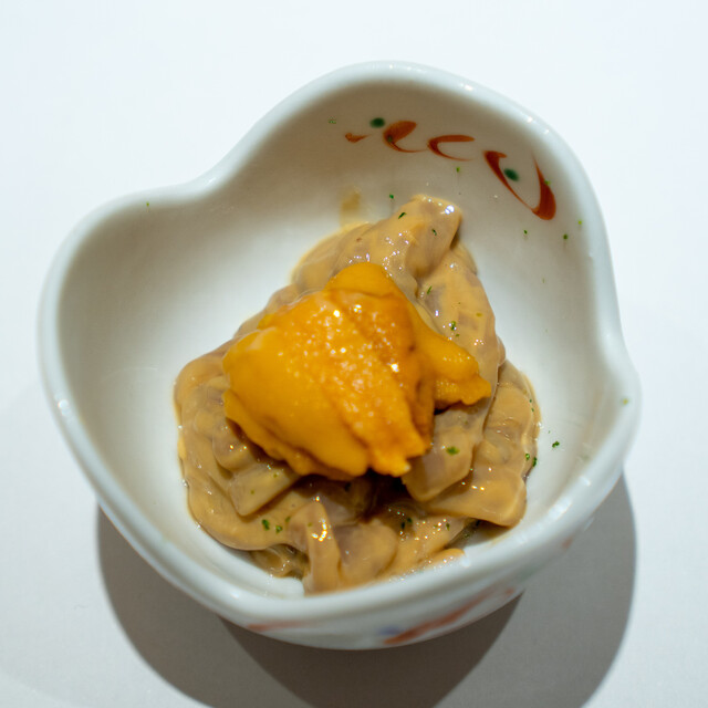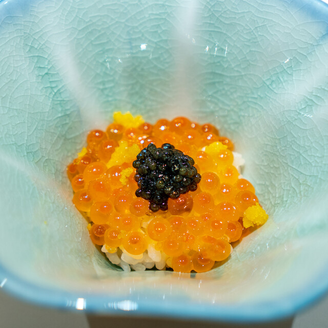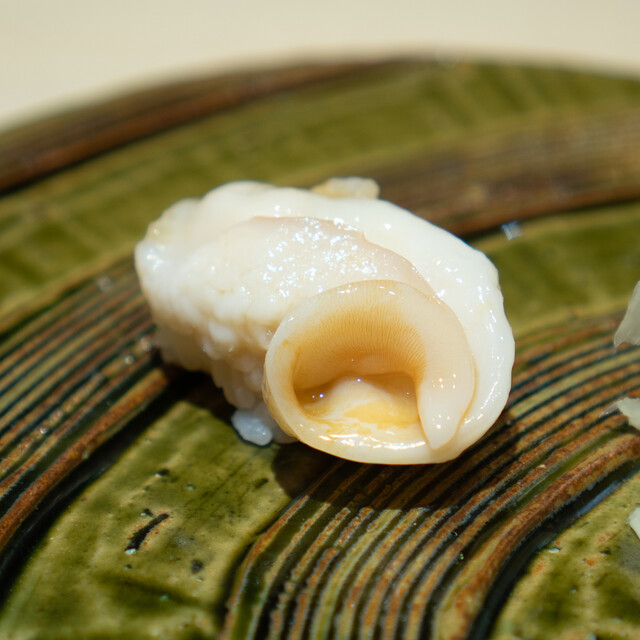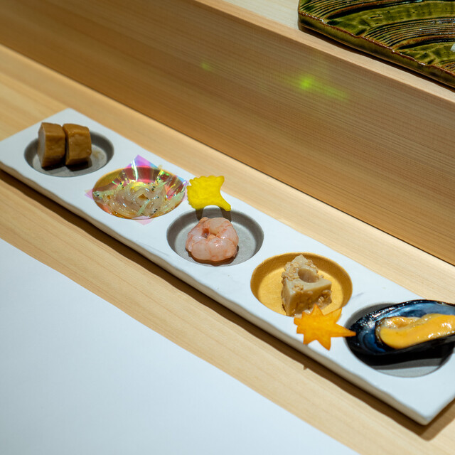幾多の経験で培った大将の鋭い感性が光る、遊び心溢れたつまみと、伝統かつ正統をゆく江戸前鮨との計算し尽くされた対比が一つのコースの中で完結。