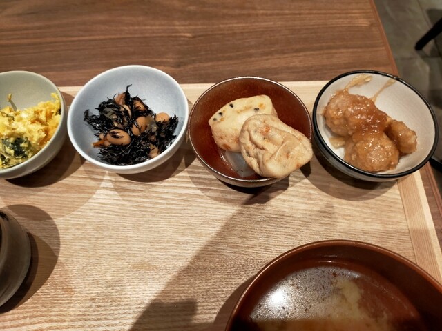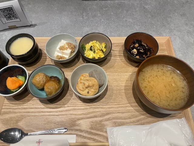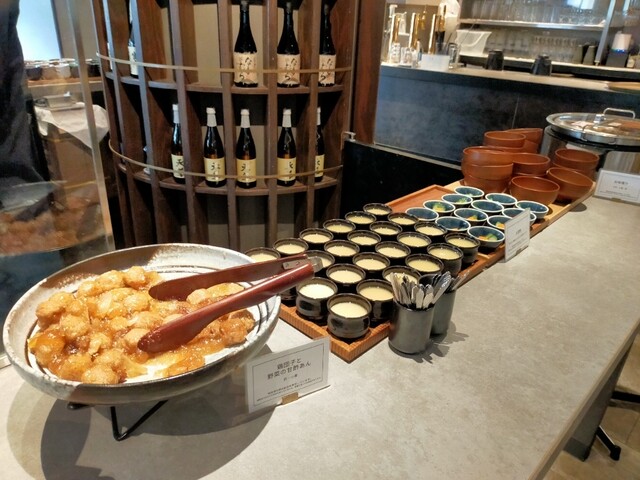 選べる主菜(豚の角煮に)種類豊富なおばんざいビュッフェ、茶碗蒸し、自家精米のごはん、お味噌汁が付...
