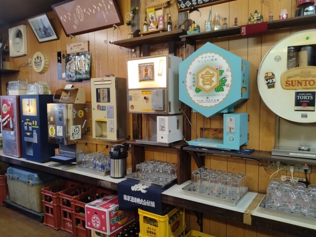 立ち飲みでも最強の部類、千ベロ(千円でベロベロまで飲める)という言葉は、このお店にピッタリ! ビールの大瓶が500円、お酒は自動販売機で!焼鳥は自分で焼くなど、個性的なお店です。 酒場放浪記でも取り上げられたお店です。