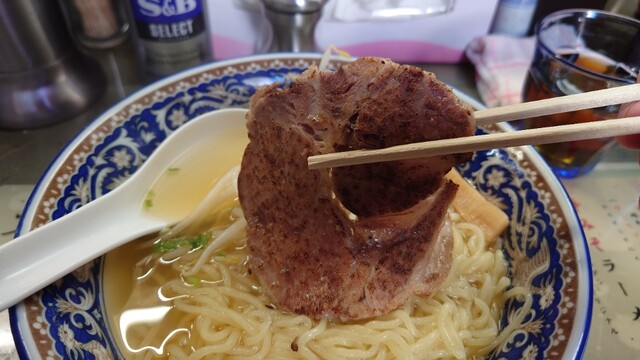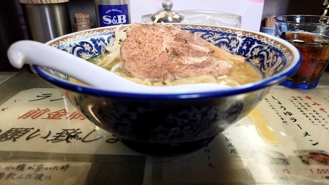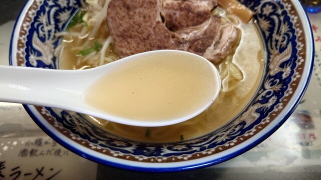 飲んだ後、22時前ぐらいフラフラとしてると こちらのお店があり、一杯いただきました。 店名がついてるし、昭和ラーメンを注文。 塩ラーメン。スープは鶏の味がメインでした。 ... 詳細を見る