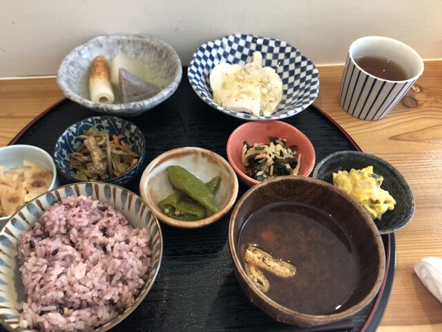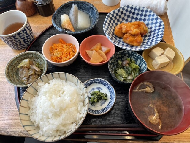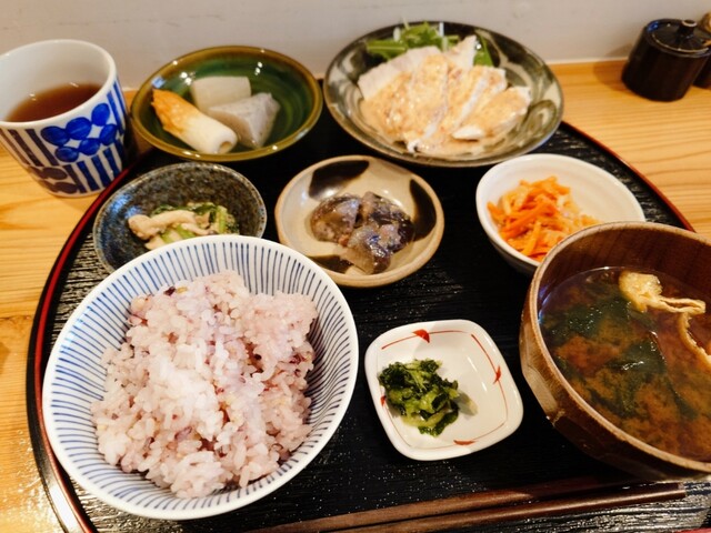 平日13:10頃、ふたりでふらっと訪問。先客はカウンターに1人客が3組。4人席テーブルが空いていたので、そちらに通されました。昼のメニューは主菜は固定で「おばんざいフルセット5種1... 詳細を見る