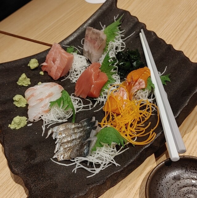 八丁堀駅から徒歩5分圏内 地下へ入ったところに店舗がありました〜 こちらのお店は看板にショルダーがついていて、「生本まぐろ」がメインのようです。 先ずはお刺身の盛り合わせから... 詳細を見る