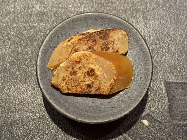 片面炙って出て来ましたが、この4ヶ月熟成されたカラスミのねっとり旨味とコクの深さよ!炙る事で更に深みが増した感じ