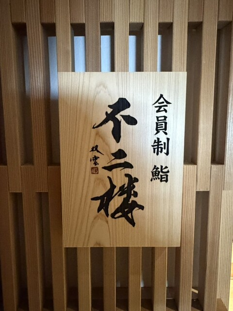 不二楼はビルに入ると1階が焼鳥、2階が会席料理、3階が鮨、4階がバーの楼閣構造になっていました。1階の焼鳥も美味しいと聞いているのでそのうち行きたいと思っています。今回はViViさんと美味しいお鮨とおつまみに塗れて来ましたが、こちらは超ゆったり空間で、話しも仕事も最高な大将に凄く気遣いな優しい中居さんが更に場を良くしていました。あまりの美味しさ&居心地の良さにまたまたシャンパン2本空けてしまいました〜(笑)それと本文に書きましたがポーションがめっちゃデカくてびっくりします(笑)ここは必ずまた伺いたいと思います。どうせなら会員になれば良かったかなぁ。どうやったらなれるか聞けば良かった。ご馳走さまでした。大将また伺います。