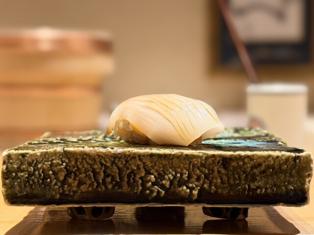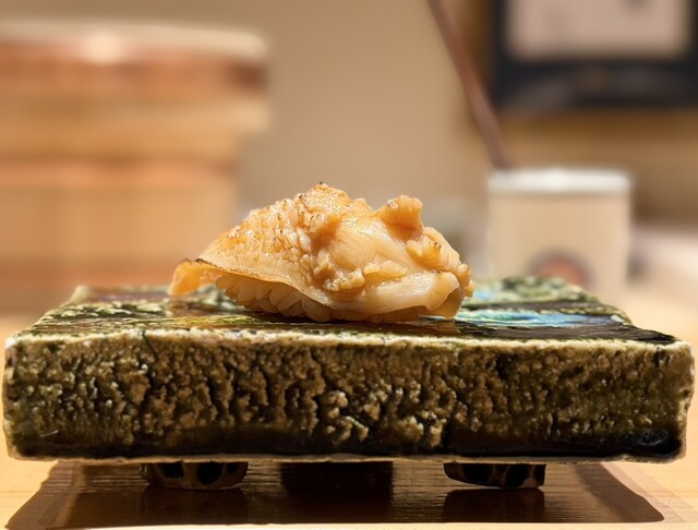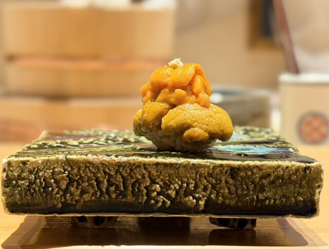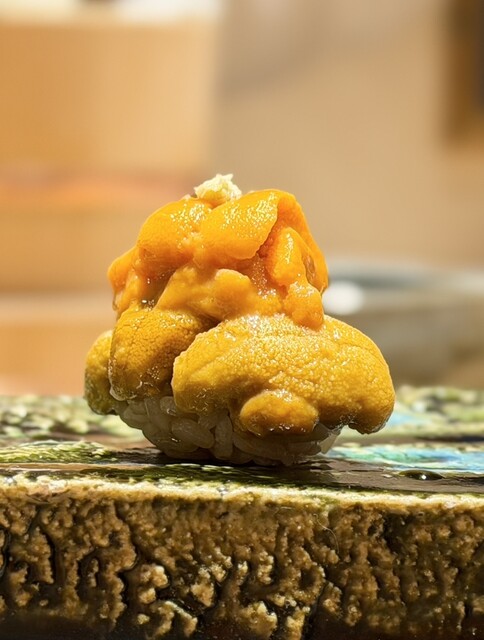 隠し包丁が入って柔らかいスミイカのシャリ側にウニが挟んでありましたよ〜♡