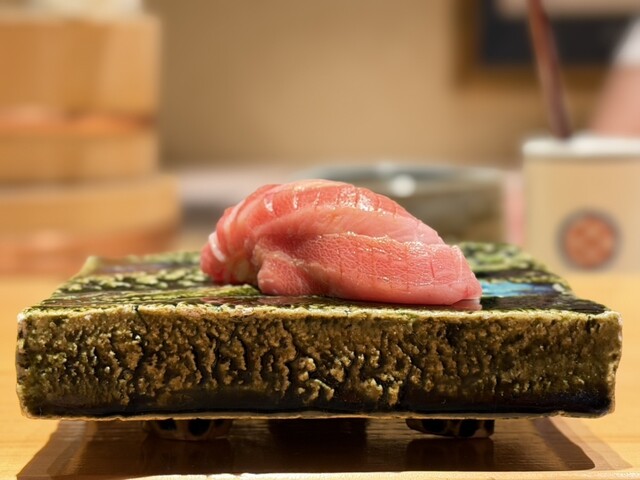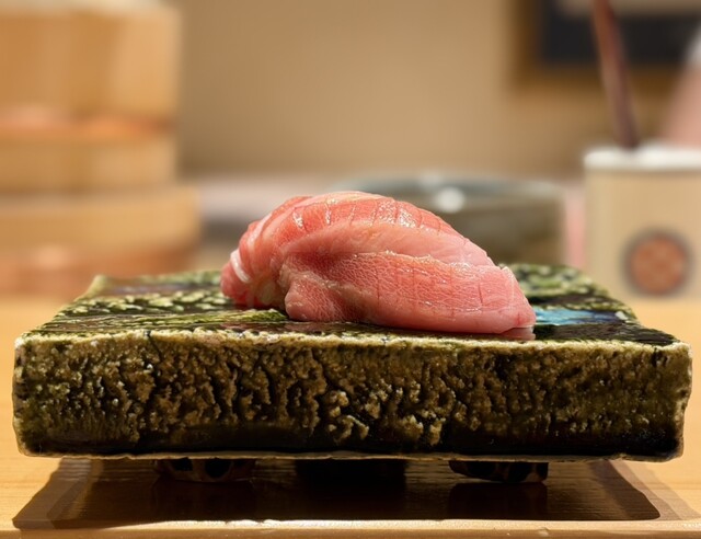 握りは大トロから。私の食べたお鮨屋さん史上最高に肉厚で体積が大きい?大トロ(๑˃̵ᴗ˂̵)写真を撮りましたがシャリが見えないし(笑)