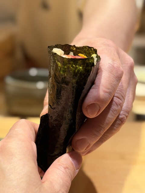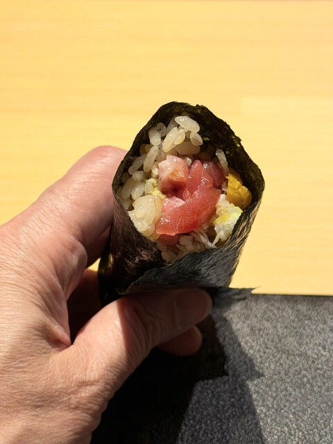 トロけるトロとたくあんとネギとシャリ。中身がぎっしり♡海苔はパリッパリ♡♡