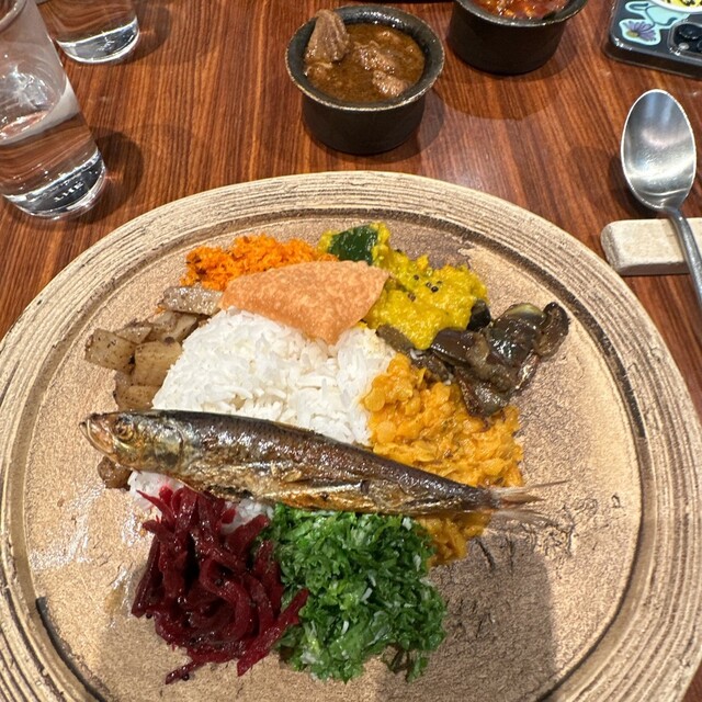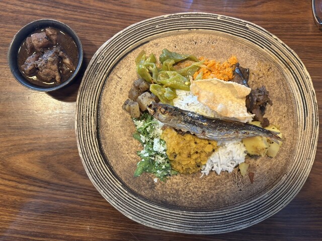兜町で頂いたスリランカ料理のランチプレートは魚介と野菜を楽しめる逸品でした!